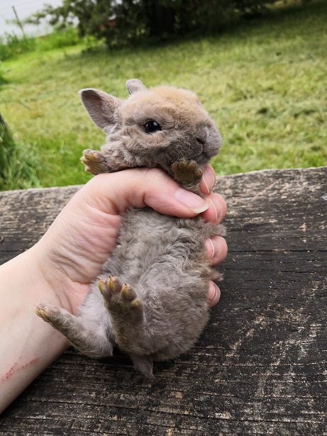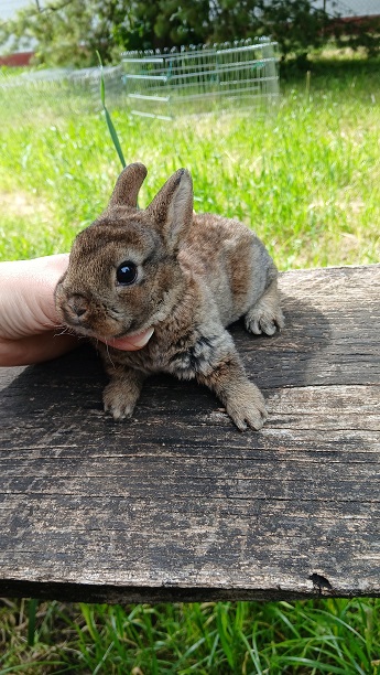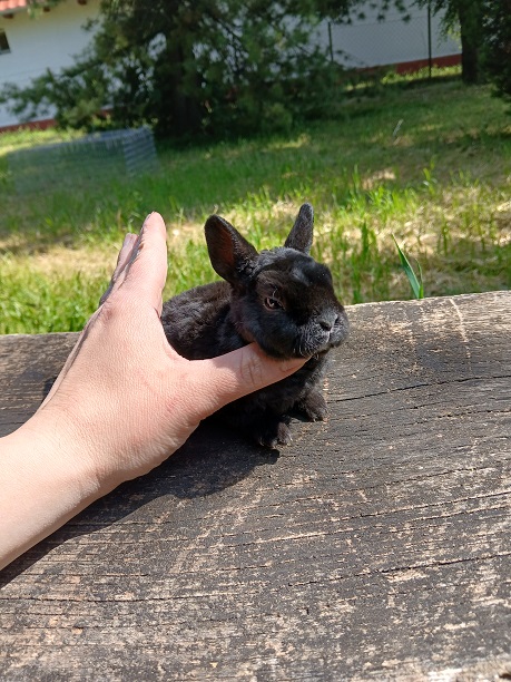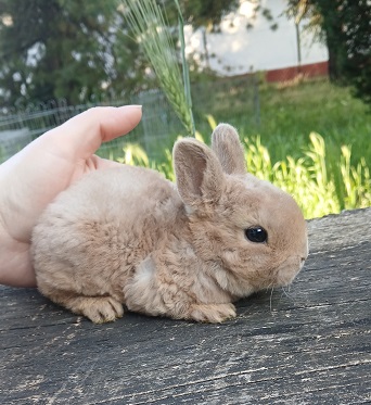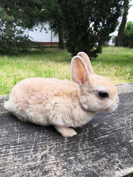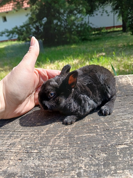 Kis termetű, nagyon nyugodt, kezes kisnyuszi.